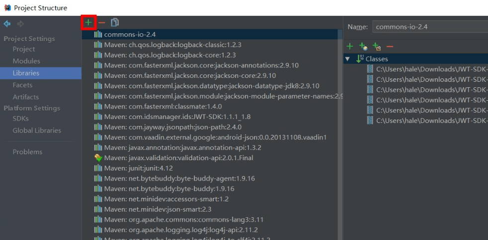 或者通过IDEA的Module Settings,手动添加JWT-SDK 本地jar包。