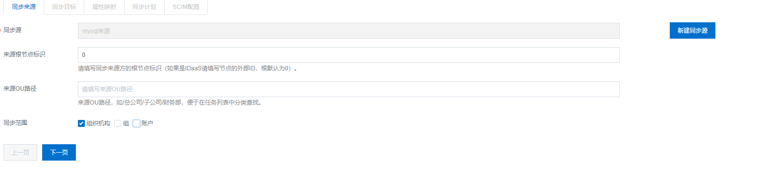 目标根节点标识:填写IDAAS中,组织机构的外部ID,即externalID。