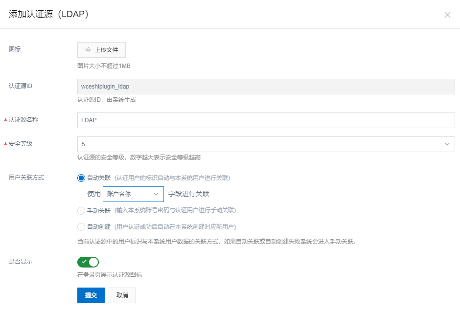 插件名称:不能超过10字符,简单明了,如:ldap认证源