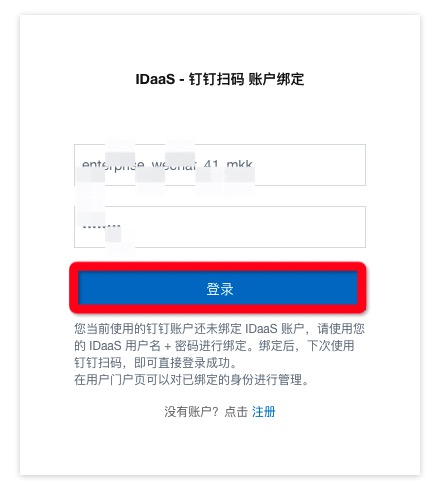 3.在绑定界面输入IDP的账户名与密码提交绑定(点击’登录’按钮)。