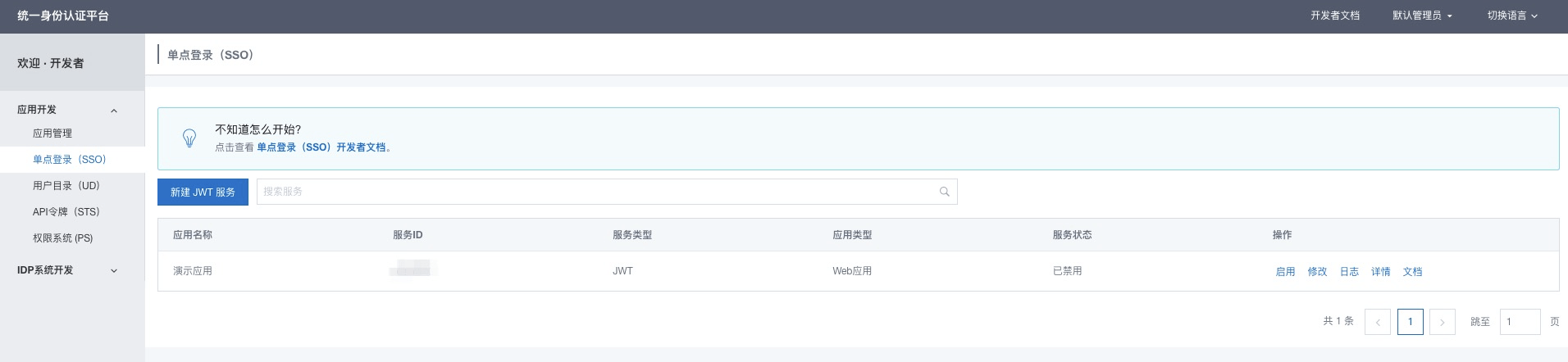 SSO 应用创建成功后,(此处省略创建 SSO 应用步骤,具体对接文档可以参考 **单点登录(SSO)**文档)